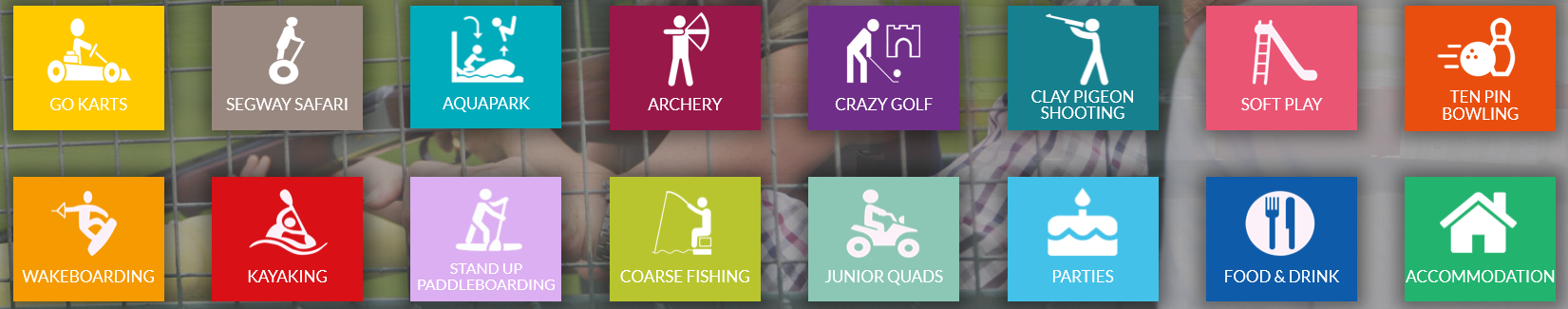 Glasfryn Parc Activity Centre 23.9 miles 01766810000 (route map) Whatever the weather you can have a great day or evening here, with over ten different activities available. Go karts, Segway, Aqua park, Archery, Crazy golf, Clay pigeon shooting, soft play, Ten pin bowling, Kayaking, Paddle boarding, Coarse fishing, junior quads plus more. There is a cafe and a fully licensed bar. Open 7 days a week.