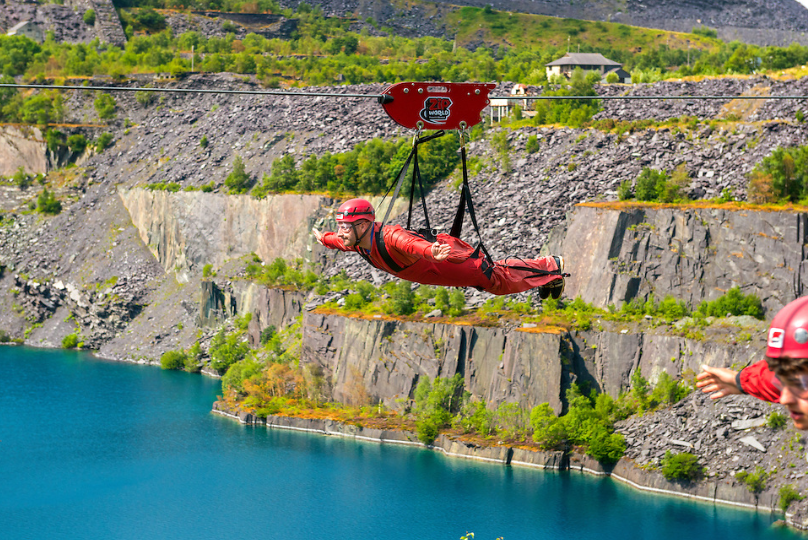 Zip world Penrhyn Quarry 29.4 miles (route map) Travel through historic Penrhyn Quarry before flying over the stunning quarry lake reaching speeds of around 100mph!! Spectators can relax in the Adventure Terminal or watch zippers soar above the viewing platform, so close you can almost touch them!. Experience exceptional dining with the breath-taking views from Blondins Restaurant! The gallery is also available to hire for group events.