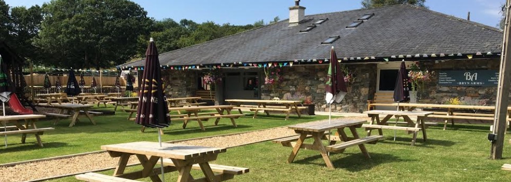 Bryn Arms 4 miles 01766540655 (route map) Friendly pub, serving a large selection of food. Good for groups, parties and children. Priced well and dogs welcome. There is a pool table and Tv screens.